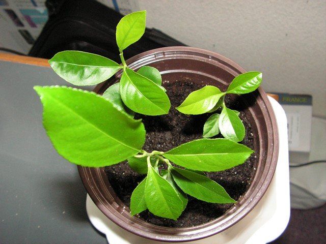 Mon premier citronnier n'a pas vraiment grandit, mais deux nouvelles feuilles sont aparus