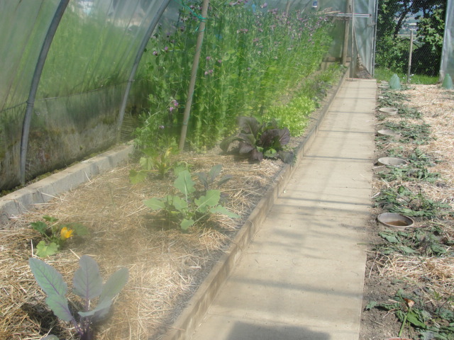 au centre: EV fauché le 12 mai, puis broyé et mis en couverture plus paille et orties entre les tomatiers