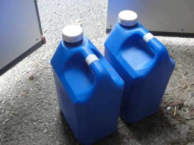 Le solde du purin a été mis en bidon de 5 litres pour un usage futur.