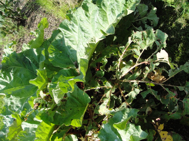 - la rhubarbe a été particulièrement bombardée par les grêlons, il ne restait plus que les nervures ...