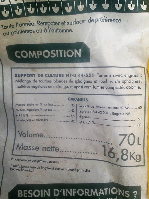 Bon , mon intervention est hors sujet par rapport au travail d'enquête ; mais puisqu'il est question de choix de terreau , il est bon de souligner que même une grande marque comme F........gène se plante , et est très chère