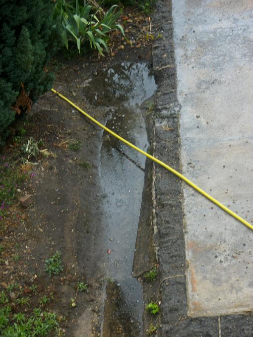 la première fois que je vois mon collecteur d'eau de pluie, à la peine pour évacuer: