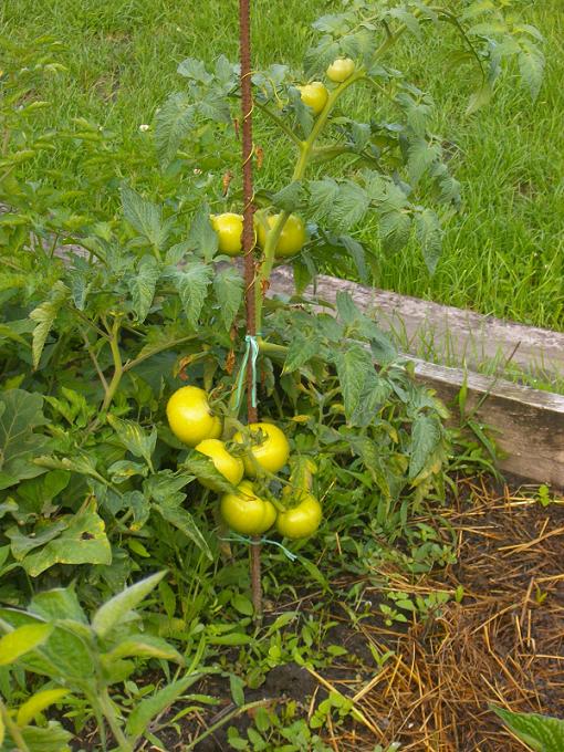au potager ça donne à fond! l'état sanitaire est bon. sauf pour les courgettes qui ont un eu peu d'oïdium et 2 plants de tomates arrachés. Autre soucis, un plant à casser net,