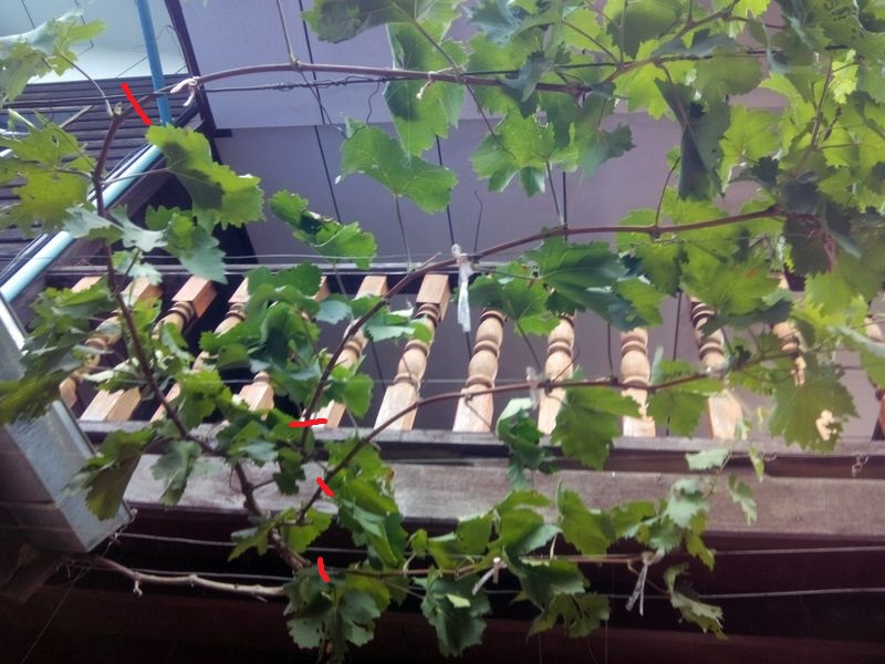 Je suis surpris que cette vigne te donne quinze grappes au vue de sa vigueur :? , ce doit être de petites grappes. Il faudra que tu lui apporte un peu d'engrais sous forme de compost.