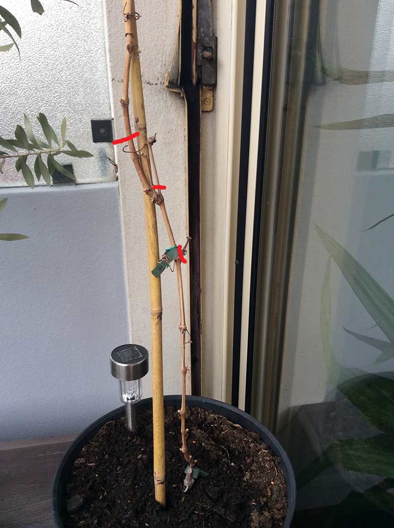 Il faut que tu coupe les rameaux après le deuxième bourgeon, tu peux laisser le rameau de l’extrémité plus long, afin de rallonger ta treille.