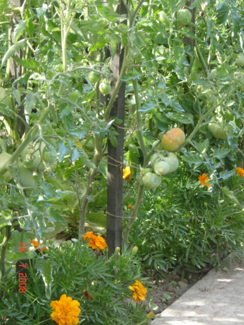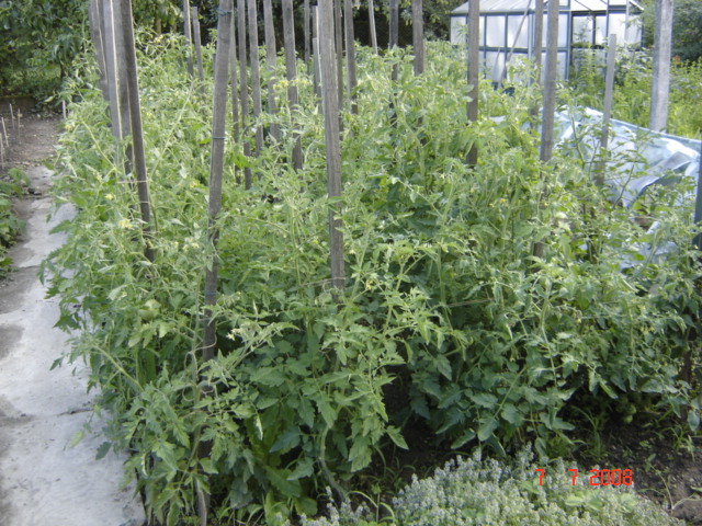 C'est vrai qu'elles sont serrées tes tomates va pas être facile pour la cueillette et fais gaffe au mildiou parce qu'il faut de l'aeration entre les plants.