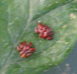 j'ai trouvé ce soir sur mes tomates (le drame) deux grappes de petites oeufs noirs, sur 2 feuilles de tomates.