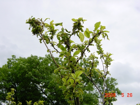 Je les ai traités aussi contre la tavelure et la moniliose à 3 reprises espacées d'une semaine et aucune amélioration. En fin de saison, je n'avais plus un fruit, et je crois que l'évènement va se répéter.