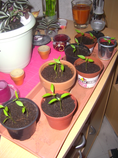 J'ai des semis de piments que je viens de repiquer car ils avaient 2 feuilles.