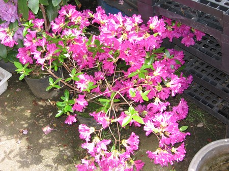 Et voilà une azalée et un beau rodo qui venait tout droit de la poubelle d'une pépinière. au début ils faisaient vraiment la tête et on leur avait coupé beaucoup de branche morte ou sèche. Là ca va beaucoup mieux et mon père est content de les avoir.