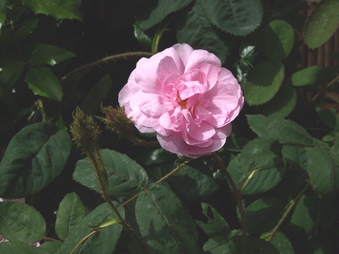 Vu la forme des boutons (mais il faudrait les voir de plus près pour être sûre), c'est probablement 'Chapeau de Napoleon', un très ancien rosier mousseux.