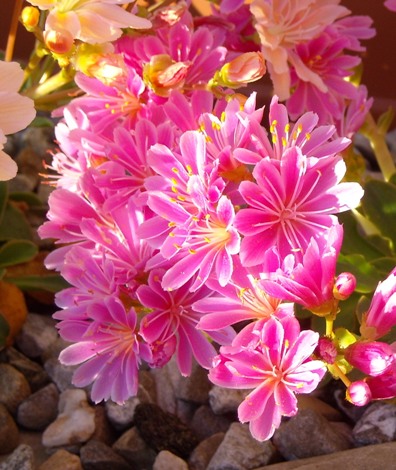 En fait c'est lewisia pour la 1ère qui font des fleurs roses foncés presque rouge en grappe et la n° 3 dont je ne connais pas le nom et qui fait des grappes jaune citron