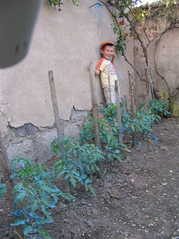là aussi , des plants très sains ! une autre variété très ancienne locale (cultivée depuis plus de 85 ans ici), sans traitements, avec mon petit Axel chèri ! au 22 juin 2008! par contre xav2, et autres amis jardiniers, regardez aux pieds des plants ,il y a une petite trace jaunâtre. l'on arrive à la deviner un peu sur le plant de droite. c une poudre! et son utilisation semble avoir un effet salvateur! (c la même "astuce" que sur les plants "emile granger" ! je ne fais pas de mystère ,mais son usage est totalement incongru dans la culture de nos chères tomate. enfin j'aimerai bien vivre de royalties! 8) ! alors si mon expèrience s'avère judiceuse, pas envie de donner rma petite "découverte" sans l'avoir officiellement enregistrée :lol: