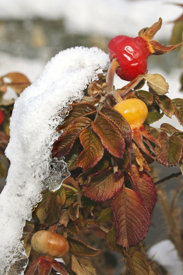 Le fruit de l'églantier est bien plus fusiforme, allongé. Donc, pareil, le fruit de Rosa rugosa, ou autre Rosa, mais pas Rosa canina.
