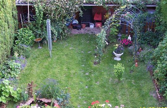 voici mon jardinet .nous l'avons entièrement refait en 2005 à l'achat de la maison .nous l'avons complètement retourné, ressemé ,fait les parterres .En 2006, un petit bassin fut ajouté et cette année , nous avons fait l'arche . Seule la haie à gauche est d'origine.