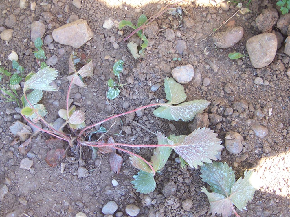 Qu: Plan de fraisiers qui pointent vers le bas...