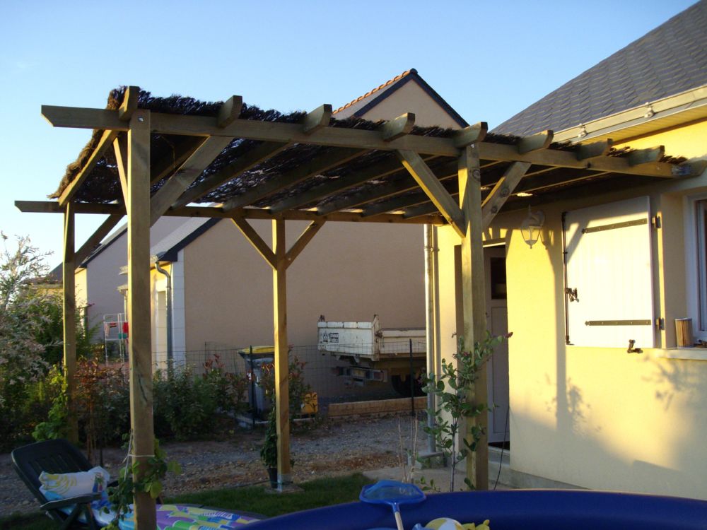 Avec tout ça j'avais oublié de vous montrer les photos de la pergolas avec la brande dessus j'ai commencé ça hier et finis ce matin.