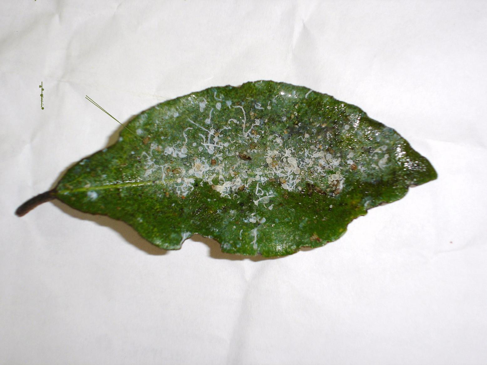 J'ai le même probléme actuellement; avez-vous résolu le vôtre; Si oui comment? Merci d'avance. L'orange du mexique , voisin est attaqué aussi mais plus discrètement et ses feuilles sont moins gluantes.