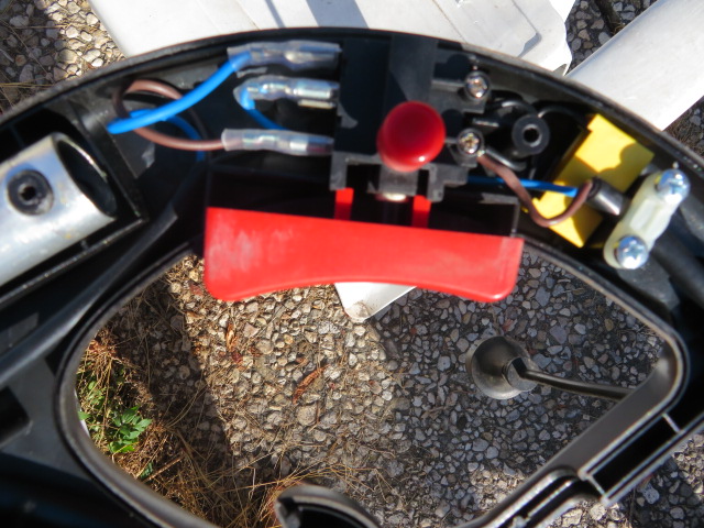 Je trouve que le système de tubes qui peuvent se plier est flaimard .... aussi hier, la fixation à lâché pour de bon ... J'ai pu remplacer le système en récupérant un ancien système de poignée d'une tondeuse hors service ... Jusqu'à la, nickel ... sauf que je rencontre un problème pour le branchement électrique de l'interrupteur marche arrêt ! Grrr Pourquoi je n'ai pas pensé à faire une photo ..grrrr