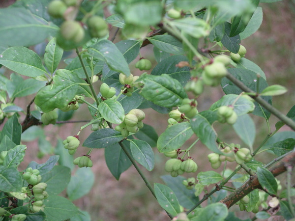 un joli petit arbuste. les fruits ont un forme originale, sont verts en ce moment mais vont devenir rose vif !!
