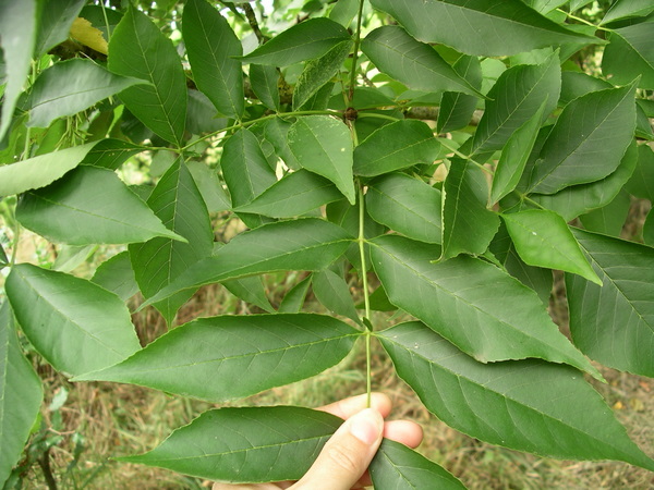 Il me semble qu'un noyer à le bout des feuilles un peu + arrondi; je dirais plutôt que c'est un frêne.