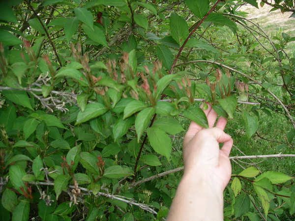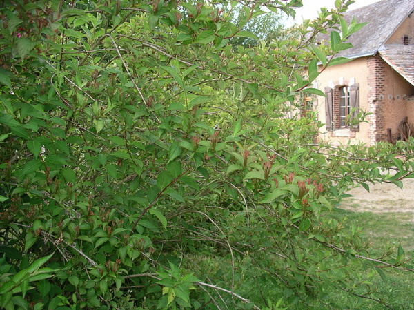 Cet arbuste comprend de nombreuses tiges qui partent du sol, et qui ont fleuri plutot sur la moitié de la tige extérieure.