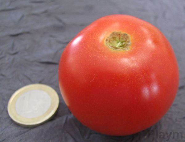 Sur ta photo elle me paraisse grosse sur ventmarin il est dit : Fruit rouge lisse rond sensiblement étiré sur la hauteur de 35 à 50 grammes. apres pour l'estimer a vu dur mais quand même.