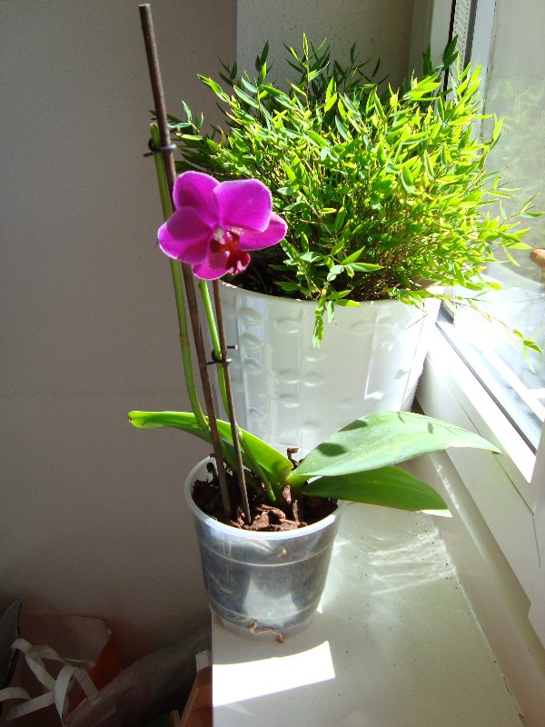 La fenetre n a pas de voilage, attention le phalenopsis tout en adorant la forte luminosite deteste le soleil direct qui brule ses feuilles ..... et sans feuille , il ne peut pas refleurir .