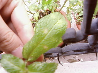 J'ai constaté depuis quelques semaines des tâches jaunes sur les feuilles de ma menthe (en balcon) qui sèchent par la suite et tombent. C'est vrai qu'il a fait très chaud et qu'elle a peut-être manqué d'eau.