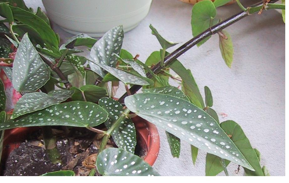 [IDENTIFIÉE] feuilles tachetées de blanc et fleurs roses