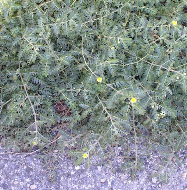 C'est le fameux Tribulus terrestris, la "croix de Malte" vendue sur le net à des prix assez élevés pour une mauvaise herbe.