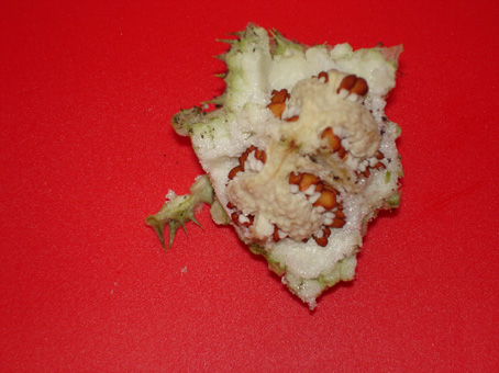Qui saurait l'identifier d'après ces photos de la capsule piquante contenant les graines ?