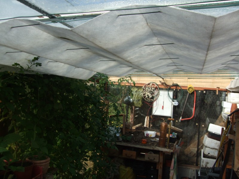 je possède une serre que j'ai construit et j'ai installé de la toile d'ombrage sur le flan et le toit coté sud.