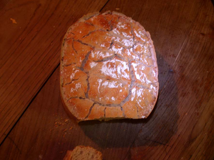 Bref, le pain n'a pas bien monté, le dessus est tout craquelé comme un lac assèché.