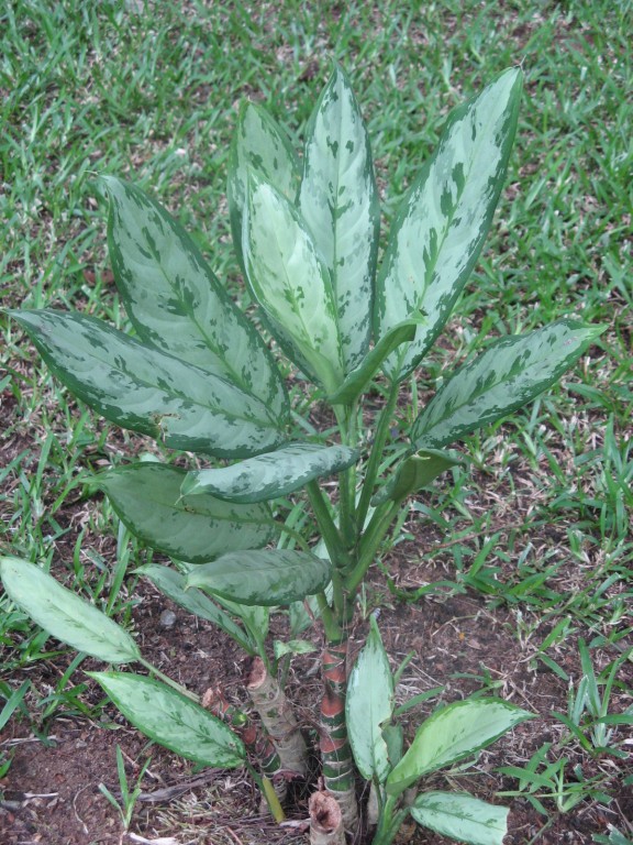 Merci à tous les deux pour l'identification. J'opte pour aglaonema "silver queen" compte tenu de sa place à l'ombre d'un grand arbre.
