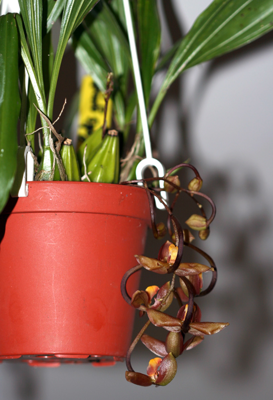 c'est une sympodiale, les hamples florales partent de la base des pseudo bulbes