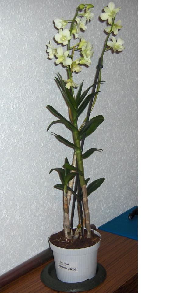 C'est un Dendrobium, une orchidée, dit "de type phalaenopsis", mais rien à voir avec un Phalaenopsis, autre orchidée.