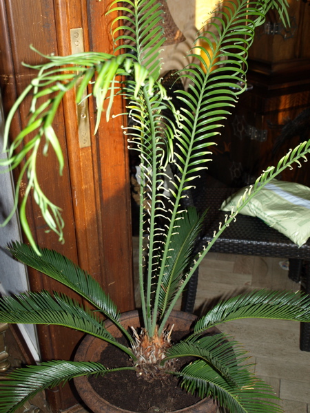 A l'état spontané, les cycas femelles portent des espèces de chatons, et les mâles, des cônes écailleux. .Mais un cycas ne fleurira jamais en intérieur.