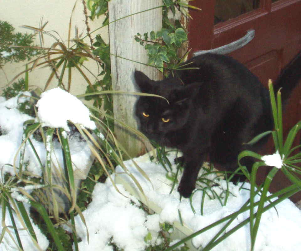 -1°; il a neigé (environ 1 cm); là il pleut : mélange de neige fondue et d'eau; j'espère qu'il ne va pas geler en fin d'aprem! il me faut retourner chez le véto!