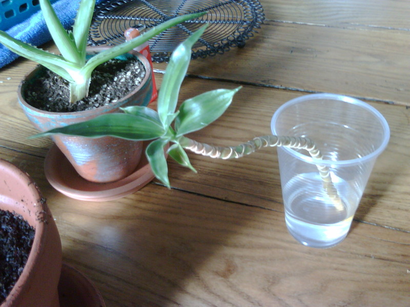 Mais lequel ? C'est pas évident avec un petit rameau comme ça, mais ça m'aiderait pour savoir comment je dois traiter celle-ci, la laisser dans l'eau et attendre des racines ou la mettre dans un pot