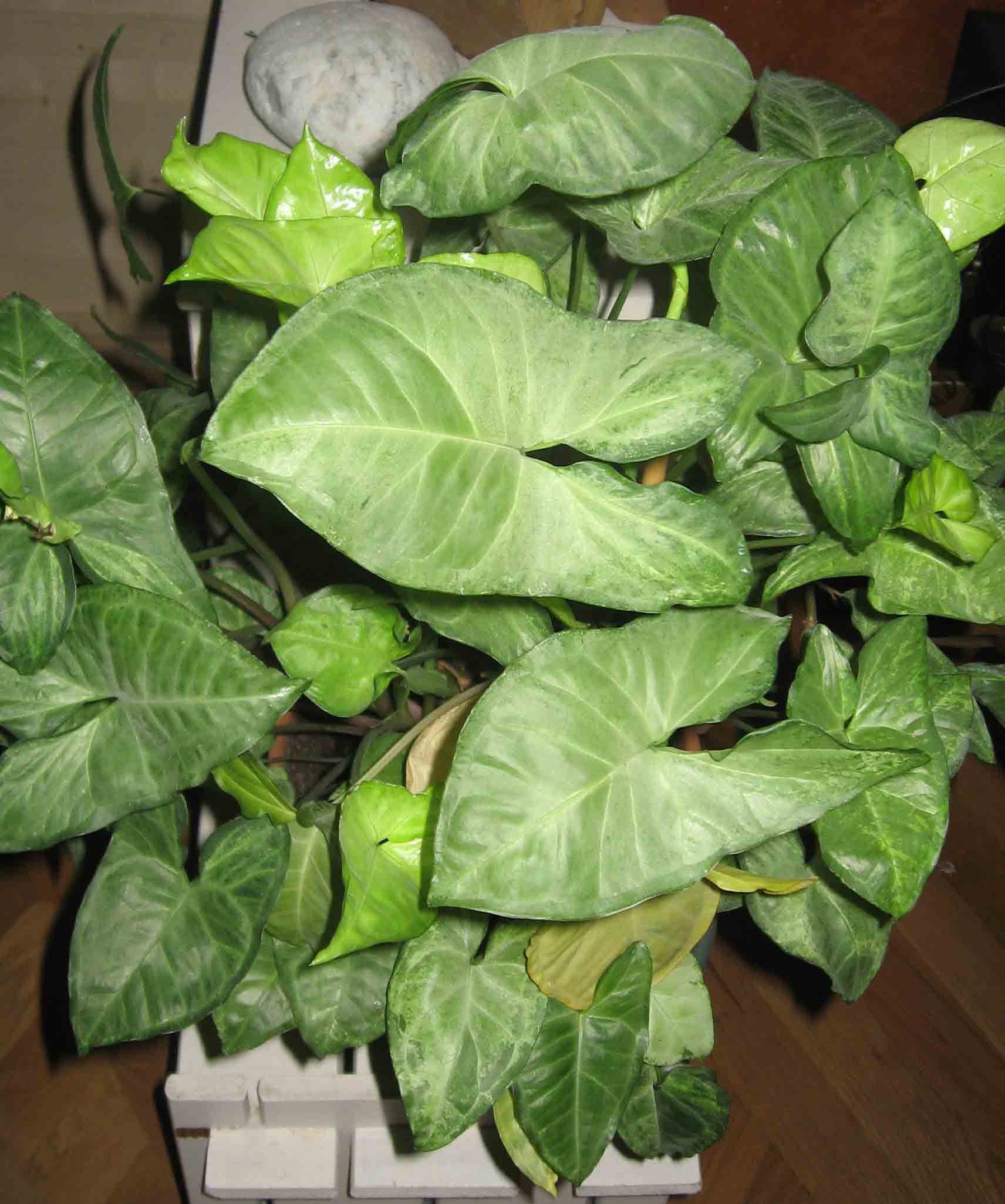 Oui, Syngonium podophyllum, une Aracée grimpante dont les feuilles se divisent en plusieurs lobes en vieillissant. On le voit rarement sur les plantes maintenues en intérieur.
