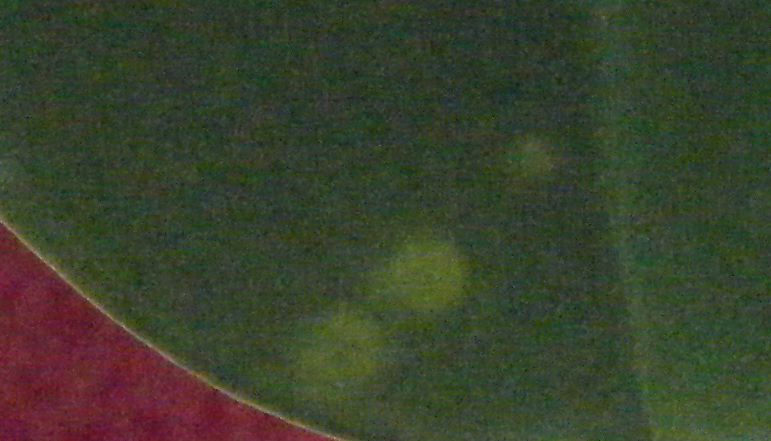 1) Que sur une des feuilles, il y a 2 taches circulaires jaunâtres.