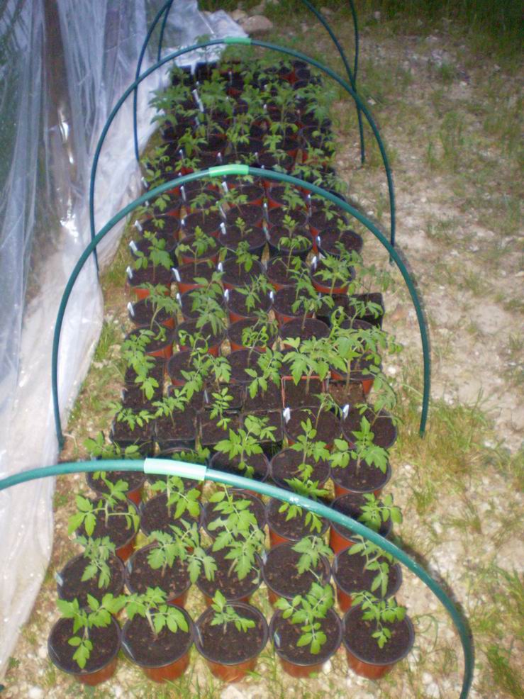 j'ai repiqué une grande partie de mes tomates, ensuite elles ont passées une petite semaine dehors sous la terrasse couverte histoire de s'acclimater doucement !!!
