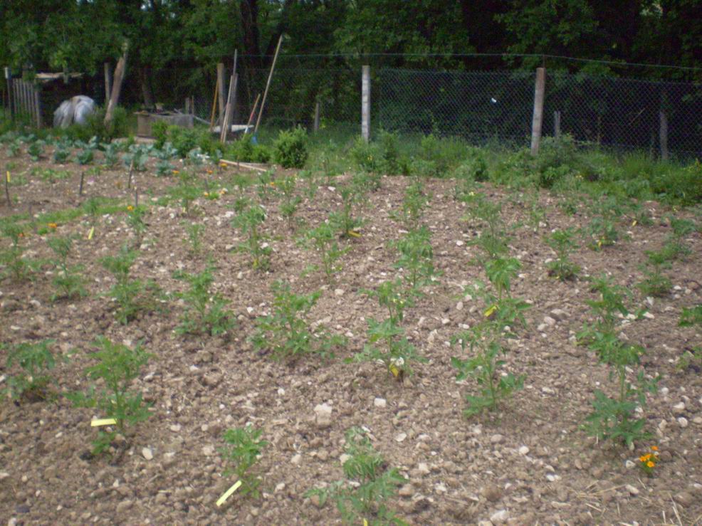 enterrées a la façon "la-belette" et arrosées juste 1 fois a la plantation ca donne ca : mon grand carré de collection avec ses 22 variétés différentes !!!