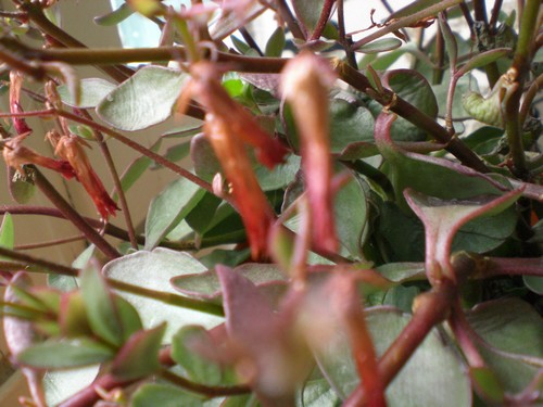 La dernière photo et celles que tu as placées quelques secondes avant que j'envoie mon premier message me confortent dans cette idée. Un Kalanchoe pinnata ou un Kalanchoe manginii (clique ici) ou tout autre Kalanchoe à fleurs rouges retombantes, pas facile de donner un nom d'espèce, et en plus il y a des variétés horticoles aux fleurs plus ou moins rouges.