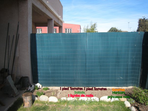 pour les tomates tu peux gagner de la place en en mettant qq pieds en pots ( attention bien nourrir et arroser ! ) et mettre les tomates cerise le long de la palissade en guise de tuteur ( mais pas trop collé contre pour laisser passer l'air )