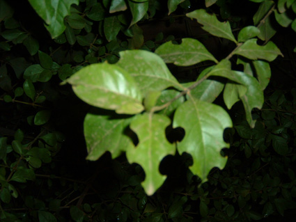 Il y a aussi un air de ressemblance avec ce qu'on voit en France métropolitaine sur divers arbustes, dont les troënes, quand il y a une attaque d'otiorhynque.