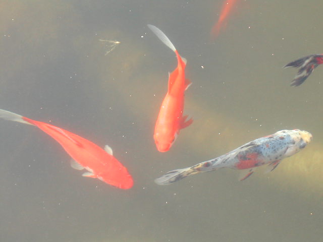 Je n'ai pas de carpes koïs, mais 8 petits poissons de ± 15 cm. Mon étang ne fait que ± 1m³. Je comptais y mettre de l'ordre dans les plantes d'ici peu, mais je crois que je vais attendre. C'est tellement beau la nature....