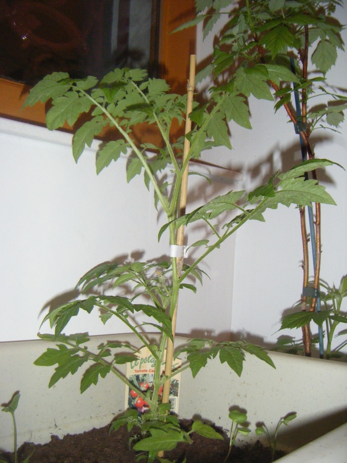 J'ai acheter il ya quelques temps un plan de tomate cerises, à côté de ça j'ai fait mes propres semis, pour pouvoir comparer l'évolution.