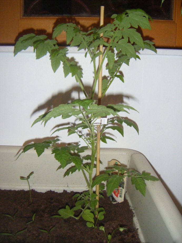 Il a simplement l'air de chercher la lumière, à part cela il est beau ton plant de tomate même un peu trop grand pour rester à l'intérieur : d'où la question suivante est: où comptes-tu le mettre après, il va commencer à être temps de penser à sa sortie.